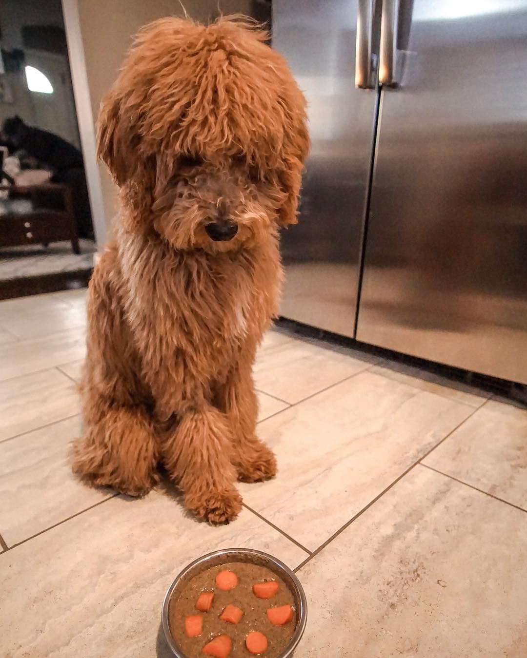 - This dog’s bowl today contains chicken, heart, lamb trimmings, a slice of tripe, trachea, carrots, and parsley.