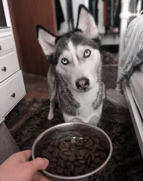 - Dogs also have a fish day, so in a bowl, there are pink salmon, salmon, herring, some tuna, capelin, blueberries, green salad, and mint.